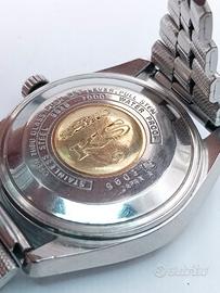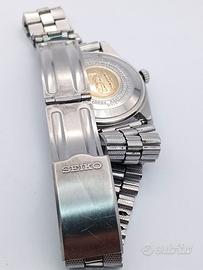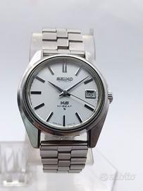 King Seiko Hi-Beat 5625-7000 – Condizioni Eccellenti Splendido esemplare di King Seiko, referenza 5625-7000, icona dell'orologeria giapponese degli anni '70. Un segnatempo che incarna la sfida di Seiko per la precisione estrema, posizionandosi ai vertici della produzione vintage del marchio. Dettagli Tecnici e Condizioni: Movimento: Calibro automatico Hi-Beat 5625 (28.800 A/h). Meccanica estremamente precisa e affidabile. Cassa: Acciaio inossidabile da 36.5 mm (esclusa corona). Le linee della cassa sono nitide, segno di una conservazione ottimale. Quadrante: Originale argento soleil in condizioni molto buone, con indici applicati e logo KS a rilievo. Bracciale: Corredato di cinturino in acciaio originale Seiko Manutenzione: L'orologio ha appena ricevuto una revisione completa (Aprile 2026). Il lavoro è stato eseguito professionalmente da Viola Orologi (Poggiomarino, NA) e ha incluso lo smontaggio e la pulitura accurata di ogni singolo componente interno. Funzionalità: Perfettamente funzionante in ogni sua parte, inclusa la complicazione della data e il fermo macchina. Prezzo e Spedizione: Prezzo richiesto: € 550 (trattabili in base alla rapidità di conclusione). Location: Disponibile per ritiro a mano presso il mio negozio Viola Orologi, Poggiomarino NA o spedizione