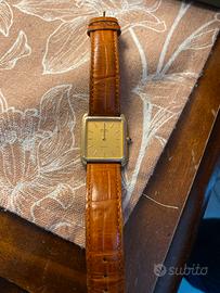 Orologio seiko lassale fine 70 inizi 80 appartenuto a mio padre e ritrovato in un cassetto dopo 40 anni! L’orologio oltre la patina vintage causata dal tempo non ha alcuna imperfezione del quadrante e sul vetro, ho rimesso la batteria nuova,e anche se ha “camminato’’poco giusto il tempo di regolare l’ora e mi è rimasta in mano la corona di carica,come potete vedere dalla foto….avrebbe bisogno di un controllo da un orologiaio ma non ho ne tempo ne modo di controllare e quindi ho deciso di vendero a chi ha passione e amore per questi lavori