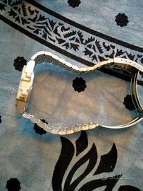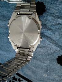 Questo gioiellino degli anni 80,made in Japan,noto come Sign Tablet o Memory Watch,si può considerare come un precursore degli smartwatch. Ha cassa rettangolare e bracciale a maglia in acciaio inox.Water resistant. Display a doppio schermo LCD. Tabella alfanumerica per memorizzare su 7 canali indirizzi e numeri di telefono. Funzioni di cronografo, sveglia e luce. L' orologio è perfettamente funzionante, dotato di libretto di istruzioni ma privo della scatola originale.