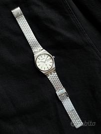 Orologio perfettamente funzionante, tiene bene il tempo ed è completamente originale, presenta leggeri segni del tempo ed il cristallo ha lievi segni superficiali, ma è comunque godibile e ben conservato. Il cambio data e la rimessa rapida sono perfettamente funzionanti. Bracciale adatto per polsi fino a 20 cm circa. Guarnizione lubrificata e batteria nuove, sostituite a Gennaio 2025.