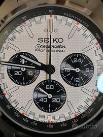 Quadrante aftermarket con estetica Speedmaster professional panda, bianco con subdial neri. Scala tachimetrica interna nera.