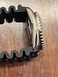 Vendo SEIKO MOD nuovo, assemblato a mano con precisione e cura, quadrante "Seiko" aftermarket, vetro minerale (zaffiro), movimento automatico Seiko NH35 made in japan cassa in acciaio inossidabile 316 L, corona e fondello a vite, lunetta girevole a 120 scatti, indici e lancette luminescenti. Automatico, consente anche la carica manuale, il fermo macchina per sincronizzazione e datario. Diametro 43- 45 mm. Funziona benissimo ed è veramente molto preciso. Cinturino in gomma tipo Seiko da immersione, orologio non testato per l'impermeabilità in immersione.