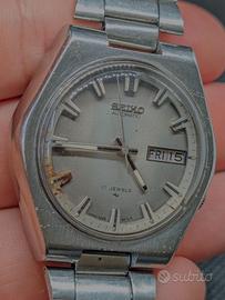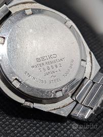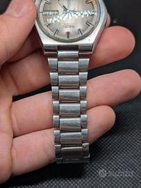 Splendido orologio vintage Seiko Automatic con movimento Seiko 7009A, risalente agli anni ’80, originale e dal fascino autentico. 🔹 Caratteristiche principali: Movimento automatico Seiko a 17 rubini, affidabile (e senza bisogno di batteria) Elegante cassa in acciaio con bracciale originale coordinato Quadrante argento con finitura che riflette la luce, creando un effetto dinamico e raffinato Datario giorno/data a ore 3 Cambio rapido del giorno tramite pressione della corona (funzione tipica Seiko) Fondello in acciaio 💎 Un orologio dal design classico e senza tempo, perfetto per chi apprezza il vintage giapponese di qualità e vuole un segnatempo versatile da indossare ogni giorno. 👉 Ottima scelta sia per collezionisti sia per chi cerca un automatico affidabile con grande personalità. 📌 Condizioni coerenti con l’età: presenti normali segni di utilizzo, visibili in foto. 📩 Per qualsiasi informazione o ulteriori foto, non esitare a contattarmi!