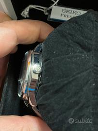 Stupendo orologio Seiko Presage Automatic Power Reserve in ottimo stato. Full set , scatola e certificato originale. Quadrante bianco in madreperla, lancetta dei secondi colore blu. Diametro 40,5.