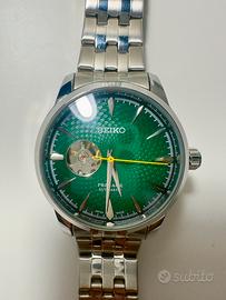 Bellissimo orologio automatico da uomo Seiko Presage Cocktail SSA441J1, con quadrante verde sfumato e “open heart” (finestra sul movimento), elegante e distintivo.