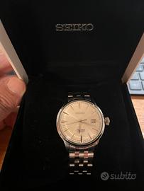 Orologio SEIKO Presage Cocktail Time referenza SRPG 23J1 come nuovo indossato una volta. Completo di tutto scatola, garanzia, maglie del bracciale e relativi perni. Acquisto il 29/10/2025 posso fornire anche lo scontrino. Orologio perfetto e come nuovo nessun segno è perfettamente funzionante. Vendo per acquistarne uno più sportivo.