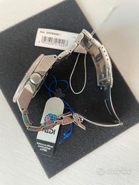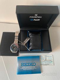 Metto in vendita questo iconico Seiko Prospex Samurai in edizione speciale PADI. L’orologio non ha bisogno di presentazioni: cassa solida dalle linee "affilate", quadrante con texture a onde e la classica lunetta Pepsi (blu/rossa) che lo rende un diver grintoso e professionale. Dettagli Tecnici e Condizioni: Referenza: SRPB99K1 (Movimento 4R35) Data di acquisto: 4 Settembre 2019 Movimento: Automatico con fermo macchina e carica manuale. Condizioni: Ottime condizioni generali. Vetro pulito e ghiera perfettamente funzionante. (Inserisci qui eventuali piccoli segni di usura, es. "Leggeri hairlines su chiusura e bracciale"). Set: Full Set (Scatola originale PADI, controscatola, manuali e garanzia ufficiale timbrata).