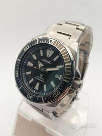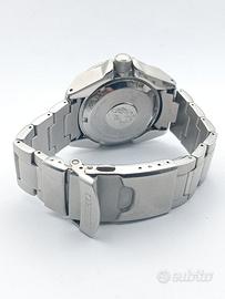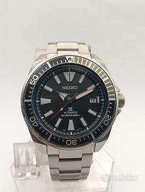 Seiko Samurai Diver 200m, referenza SRPF03K1 (già SRPB51). L’orologio non ha bisogno di presentazioni: un diver professionale robusto, caratterizzato dalla cassa dalle linee spigolose e dal quadrante con trama "waffle" nera. Dettagli e Condizioni: Stato: Ottime condizioni generali. Usura: Lievi e normali segni di utilizzo (hairstyles) sull'acciaio del bracciale e della chiusura, come da foto. Vetro Hardlex e lunetta puliti. Corredo: Completissimo (Full Set). Include scatola originale, controscatola, manuali e card di garanzia/acquisto ufficiale. Movimento: Calibro automatico 4R35 perfettamente marciante, con fermo macchina e carica manuale. Caratteristiche tecniche in breve: Cassa in acciaio da 43.8mm. Impermeabilità 200m (diver's ISO). Quadrante nero con indici e lancette in Lumibrite (visibilità eccellente). Bracciale in acciaio con chiusura di sicurezza e prolunga per muta. Da Viola Orologi, Poggiomarino NA