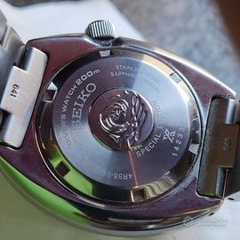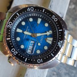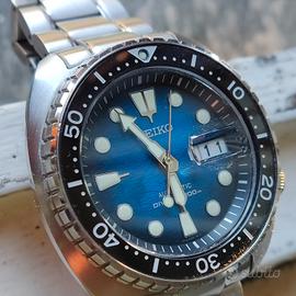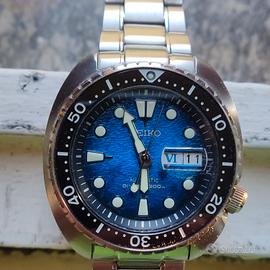 Orologio Seiko Prospex Turtle edizione Manta Ray usato in ottime condizioni estetiche e funzionali. Cassa in acciaio inox 44 mm, vetro zaffiro con lente ciclopica sul datario, ghiera girevole unidirezionale, cinturino originale con tutte le maglie, movimento automatico 4R35, diver professional 20 Atm. Vendo con formula visto e piaciuto e conseguente esclusione di garanzia ad euro 270,00 , non uso tuttosubito, solo consegna a mano nelle province di Lodi e Pavia, no altre modalità di transazione. Prezzo intrattabile, no foto no video. Grazie.