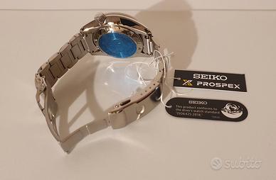 Metto in vendita dalla mia collezione privata SPLENDIDO Seiko Prospex Twilight Blue - SPB097J1 Edizione Limitata. Orologio ASSOLUTAMENTE NUOVO, INDOSSATO SOLTANTO 1 VOLTA per mettere a misura il bracciale, privo di graffi o segni di qualsiasi genere, ancora con pellicola sul fondello!!!!! Custodito sempre in cassetta di sicurezza con pellicole protettive e sacchettini anti umidità. Orologio FULL SET, comprensivo di Scatola Originale Seiko, Contro Scatola, Card e Libretto di Istruzioni. Movimento 6R15 a carica automatica e opzione a carica manuale; Funzione arresto lancetta dei secondi, 3 sfere/data; Frequenza 21.600 alternanze/ore, 23 rubini; Riserva di carica di oltre 50 ore; Cassa in acciaio inossidabile da 44 mm con rivestimento antigraffio e lucidatura Zaratsu; Corona a vite lunetta girevole unidirezionale indici e sfere con Lumimbrite; Bracciale in acciaio con pulsante di sicurezza e rilascio; Fondello a vite; Vetro zaffiro antigraffio e antiriflesso; Impermeabilità 200 m/660 piedi. Orologio dotato di astuccio speciale contenente un secondo cinturino in silicone con chiusura ad ardiglione, NUOVO, MAI UTILIZZATO!!! Riedizione dello storico modello subacqueo del 1968 in edizione limitata a 2019 pezzi al mondo, per il mercato Europeo e Stati Uniti!!!!! Orologio FUORI PRODUZIONE, splendido, di difficile reperibilità, soprattutto in Italia e di sicuro interesse collezionistico per gli amanti della casa di Chūō (Tokyo). ASTENERSI CURIOSI O PERDITEMPO!!!!! ESCLUSIVAMENTE CONSEGNA A MANO.