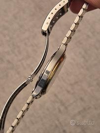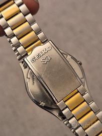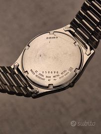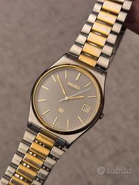 Splendido Seiko Quartz 5Y22-8A60 del maggio 1990, un perfetto esempio di stile "Neo-Vintage". Un segnatempo che unisce l'affidabilità del quarzo giapponese a un'estetica ricercata che richiama i celebri design di Gérald Genta, grazie alla cassa con bracciale integrato. Caratteristiche Principali: * Design & Quadrante: Bellissimo quadrante argento con indici applicati e lancette color oro a contrasto. La combinazione genera splendidi giochi di luce e riflessi metallici sotto il sole. * Condizioni del Vetro: Letteralmente perfetto, privo di qualsiasi graffio o segno di usura. * Meccanica: Movimento Seiko Quartz 5Y22 preciso e affidabile. Batteria appena sostituita. * Funzioni: Datario a ore 3 perfettamente funzionante con scatto rapido. * Materiali: Finitura bicolore (Acciaio e Oro) tipica dell'epoca, molto elegante e versatile. Dimensioni & Vestibilità: L'orologio presenta proporzioni classiche e sottili, perfette sotto il polsino di una camicia o per un look quotidiano discreto: * Diametro: 34 mm (esclusa corona) * Lug to Lug (da ansa ad ansa): 40 mm * Spessore: Solo 8 mm * Bracciale: Originale Seiko con chiusura logata SQ. Ampio, adatto a polsi fino a 20 cm, facilmente regolabile tramite la microregolazione sulla scatoletta. Stato di conservazione: L'orologio è in condizioni estetiche ottime per la sua età (36 anni!). Funzionamento impeccabile. Ideale per chi cerca un pezzo vintage con un carattere deciso ma dalle dimensioni contenute e confortevoli. Spedizione rapida e imballaggio accurato. Non esitate a contattarmi per ulteriori foto o informazioni! #seiko #seikoquartz #vintage #vintagewatch #seiko5y22 #goldentagenta #geraldgenta #vintageseiko #orologiovintage #steelintegrated #integratedbracelet #1990sstyle #neovintage #seikosq #dresswatch #orologiodauomo #luxuryvintage #retrostyle #seikocollector #orologioacciaiooro