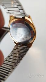 Vendo Seiko Quartz serie SQ, anni '80. Finitura dorata e quadrante con texture, "a nido d'ape". Con indicatore di giorno e data posizionata a ore 3. Funzionamento al quarzo. Cassa e bracciale integrato in acciaio dorato. Ottime condizioni, colore leggermente sbiadito dovuto all'utilizzo nel tempo. Se non chiedete sconti, posso includere nel prezzo una box Seiko originale modello "ufo". Contattami per info!