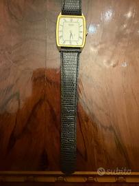 Vendesi orologio Seiko Quartz originale, modello 6530-5780, un classico dress watch degli anni ’80. Design elegante con cassa rettangolare dorata, quadrante chiaro con numeri romani e movimento al quarzo. Caratteristiche - Marca: Seiko - Modello: 6530-5780 - Movimento: Quartz - Periodo: anni ’80 - Cassa: placcata oro, forma rettangolare - Fondello: acciaio inox - Quadrante: bianco/avorio con numeri romani - Cinturino: in pelle nera Portaorologio Longines incluso Spedizione in giornata!🚚 Contattare per qualsiasi info!📩