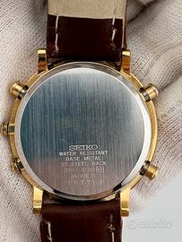 Vendo orologio Seiko referenza 7t32-7c30 con cassa placcata in oro giallo e fondello in acciaio inox. L’orologio si prende tra in condizioni ottime quasi NOS (fondo di magazzino). Il cinturino è appena stato cambiato con uno in pelle e il vetro non presenta graffi. L’orologio tiene bene la carica e la batteria è appena stata sostituita, i pulsanti scorrono bene. Le misure dell’orologio sono di 36,7 millimetri di diametro esclusa la corona e i pulsanti, 39,4 millimetri di lug to lug e solo 8,5 millimetri di spessore. Scambio a mano a Ravenna oppure spedisco ovunque