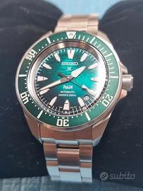 vendo seiko samurai padi edizione speciale ref: SRPL53K1 sfondo SPETTACOLARE verde smeraldo edizione speciale dedicato all oceano diametro cassa ridimensionata da i modelli samurai precedenti,da 41,70 mm movimento automatico 4R35 con riserva di carica da 41 ore, vetro in zaffiro, impermeabilita' 200m datario tra le ore16 e 17. orologio nuovo acquistato da negozio ufficiale seiko in data 18/07/25 completo di scatola controscatola, libretto seiko, card maglie aggiuntive e scontrino. NON SCAMBIO NON RISPONDO AD OFFERTE A RIBASSO. SPEDIZIONE GRATIS. Vanes 3775372773.