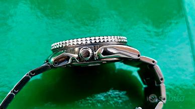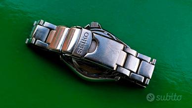 Vendo raro Seiko SBCM023, orologio venduto esclusivamente in Giappone. Calibro 8F35 calendario perpetuo ad alta frequenza (196kHz invece degli usuali 32kHz) "thermo-insenstive", con accuratezza annuale originaria di +/-20 sec/anno, durata della batteria stimata a 8 anni. Orologio del Marzo 2007. L’esemplare presenta normali segni di utilizzo coerenti con l’età sia su cassa e bracciale e sia sul vetro, ma rimane perfettamente godibile sia esteticamente sia funzionalmente. Cassa slim mid size da 37 mm (esclusa corona), spessore di circa 11 mm e distanza ansa-ansa di circa 44mm, con larghezza anse da 20 mm. Bracciale originale adattabile fino a polsi di circa 18cm, 20cm utilizzando la prolunga. Non sono interessato a scambi con Orient, Casio, Citizen, Squale, Doxa, Omega, Longines, 5 Sports, 6309 Turtle, SKX