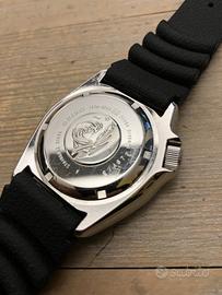 Orologio in buone condizioni con minimi segni d'uso. Ref. SKX009K1. E' stato revisionato a febbraio 2026. Centurino in gomma aftermarket. Movimento seiko 7S26 automatico (si carica solo con il movimento non con la corona). Viene fornito con custodia da viaggio Seiko.