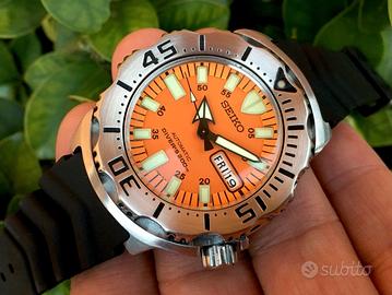 diver seiko scuba monster SKX 781 orange ref.7s26-0350.Orologio in splendide condizioni.Cassa acciaio da 42 millimetri ad esclusione della corona di carica,data e giorno ad ore 3 OK,ghiera girevole 120 click perfettamente funzionante,fondello a vite ,corona doppio scatto a vite ok ,movimento originale automatico marcato seiko 7s26 perfettamente funzionante e con buona tenuta del tempo e riserva di carica,non possiedo scatola e garanzia.