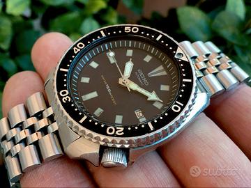 GUARDA ANCHE GLI ALTRI MIEI ANNUNCI,POTRESTI TROVARE IL SEGNATEMPO CHE STAI CERCANDO! SE L’INSERZIONE È VISIBILE L’OROLOGIO E’ DISPONIBILE LEGGI TUTTO! Prezzo non trattabile ! ( GENTILMENTE NON CHIEDETE ) Seiko scuba diver vintage automatic ref.7002-7000 cassa da 42 millimetri ad esclusione della corona di carica,datario ad ore 3 ok,corona doppio scatto a vite ok ,ghiera girevole bidirezionale perfettamente funzionante,movimento originale a carica automatica seiko cal.7002A perfettamente funzionante con buona tenuta del tempo e riserva di carica,orologio completamente originale ad eccezione del bracciale jubilee aftermarket,non possiedo scatola e garanzia PREZZO NON TRATTABILE No Perditempo NO scambi o permute con cronografo omega oro 18 kt zenith stellina sporto surf autosport tissot seastar navigator world time powermatic longines eberhard gran seiko king seiko squale mido breitling chronomat bulova 6139 bullhead ufo orient star diver vintage mondia philip watch carribean hydroconquest admiral scafograf scafodat universal geneve movado lorenz zodiac baume mercier girard perregaux constellation seamaster speedmaster super compressor el primero rainbow valjoux landeron extra fort broad arrow tcm tudor black bay perseo ultra chron pogue speed timer kakume challenge skx aqualand ufo traversetolo tazio nuvolari precision ocean callisto big size over sinn zodiac 30L dynamic snorkel lady tiffany mont blanc sideral afp 28800 6138 calculator multifort tv big date respirator ultra chron calatrava caravelle 007 009 011 7750 big date