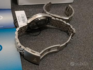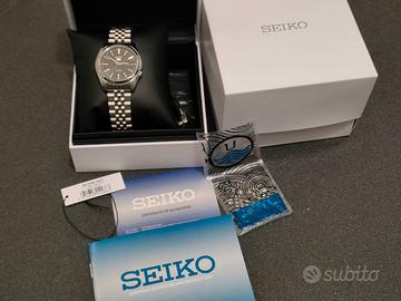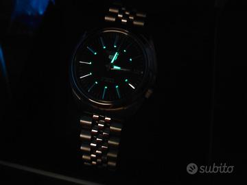 SEIKO5 Ref. SNKL45K1 Bracciale di alta qualità Uncle Straps già montato, serie Executive (stile jubilee) provenienza USA. Movimento: Automatico Materiale Cassa: Acciaio Bracciale: acciaio Colore Quadrante: nero Funzione: Giorno/Data Dimensioni Cassa: 38mm Water Resistant: 30m Condizioni perfette, senza alcun segno di utilizzo. Corredo completo, scatola e controscatola, libretto, garanzia e fattura, tag originali. Non sono interessato a scambi con citizen, casio, orient, microbrand o skin diver vintage.