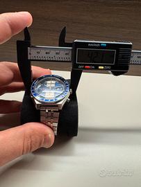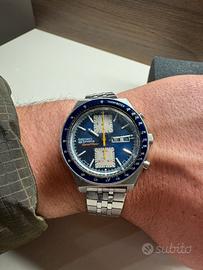 Splendido Seiko Sports Speed-Timer kakume cronografo vintage originale anni ‘70, un vero must per collezionisti e appassionati. •🔵 Quadrante blu originale con contatori bianchi •⏱ Cronografo perfettamente funzionante •📅 Day-Date a ore 3 •⚙️ Movimento automatico Seiko (calibro cronografico storico) •🧭 Ghiera tachimetrica blu •🔩 Cassa acciaio in ottime condizioni per l’età •🔗 Bracciale in acciaio (compatibile, ben abbinato) L’orologio è funzionante e tiene bene il tempo. Normali segni del tempo presenti, coerenti con l’età. Accetto scambi e permute.