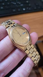 Orologio vintage funzionante, con normali segni d’usura dovuti all’età. La placcatura oro risulta leggermente sbiadita in alcuni punti (come visibile in foto).