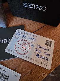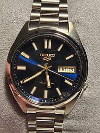 💯💯💯 Seiko serie SNXS dial blu💯💯💯 L'orologio è pari al nuovo è stato acquistato il 26 marzo 2026 Garanzia 2+2 anni come scritto sulla card. maglie aggiuntive corredo completo tu. prezzo da cartellino 400 euro. Condizioni 10/10. Disponibile a ulteriori informazioni e a trattare leggermente il prezzo,solo se veramente interessati. Movimento Calibro4R36Tipo di movimentoAutomatico con capacità di carica manualeRiserva di caricaCirca 41 oreNumero di rubini24Funzioni Funzione arresto lancetta dei secondi data/giorno Cassa/Cinturino Materiale della cassaAcciaio inoxDimensione della cassaSpessore:12.5mm Diametro:37.4mm Lug-to-lug:44.7mmVetroHardlex curvoLumiBriteLumiBrite su lancette e indiciChiusuraTripla chiusura pieghevole con rilascio a pulsanteIl perimetro del bracciale205.0Distanza tra le anse18 Altri dettagli Resistenza all’acqua10 barRiluttanza magnetica4,800 A/mPeso125.0Caratteristiche Fondello trasparente / Fondello a vite