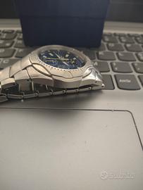 Seiko cronografo 100 metri in ottime condizioni solo con qualche leggero segno di uso.Viene venduto con scatola generica e senza istruzioni.In caso di uso in acqua va verificato la tenuta