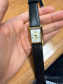 Vendo meraviglioso seiko tank vintage con quadrante bianco e cinturino in pelle color nero, e cassa e dettagli in corazione oro.