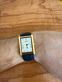 Vendo meraviglioso seiko tank vintage con quadrante bianco e cinturino in pelle color blu, e cassa e dettagli in corazione oro.