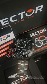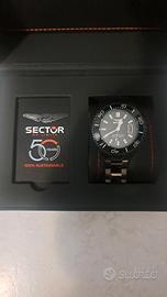 Orologio Sector 230 edizione limitata 1000 pezzi per i 50 anni di Sector. Impermeabile 300 metri con valvola per l'elio. Vetro trattamento zaffiro. quadrante nero con motivo ad onde. Cassa e bracciale PVD nero.
