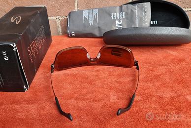 Occhiali da sole Serengeti modello Nunzio nuovi, perfetti e leggerissimi, montatura in polimero e acciaio armonico, astine modellabili, naselli in silicone regolabili, peso: 25 grammi circa addosso non si sentono. Design iconico ed esclusivo, assolutamente unisex. Lenti curvatura base 6; Serengeti Driver categoria 2/3 Phd polarizzate fotocromatiche, il più veloce fotocromatico che abbia mai visto, con sole forte scuriscono in circa 4/7 secondi. Vedi foto esempio cerchio più scuro per evidenziare la differenza tra massimo e minimo oscuramento. Realizzate in materiale polimerico Serengeti 'Trivex' cercate sul sito ufficiale di Serengeti per tutti i dettagli; antigraffio, polarizzati, fotocromatici e tecnologia Spectral Control. Misure lente 58, ponte 18, astine 130. Completi di custodia, brochure confezione originale. Non scambio: con rèvo, oakley, serengeti, persol, ray ban, maui jim; solo con Vuarnet categoria 4, possibilmente modello Glacier con lente a goccia o Serengeti Matera pari condizioni.