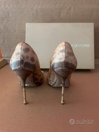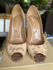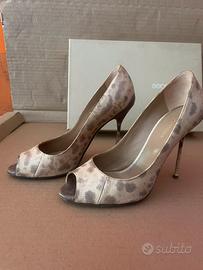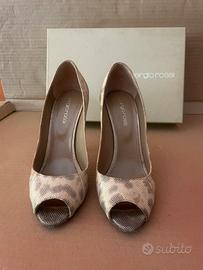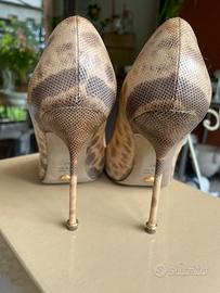 Decolte SERGIO ROSSI tacco a spillo cm 12 aperte davanti ,semi nuove in rettile beige e nero numero. 37 decolte molto femminile e super sexy