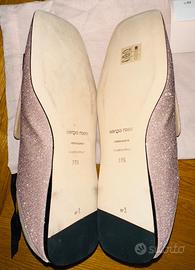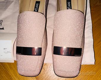 Mocassini Sergio Rossi taglia 39 1/2, nuove mai indossate, glitter color cipria. Originali