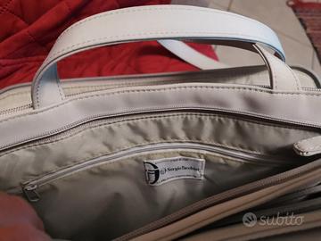 SERGIO TACCHINI Exclusive Design in ecopelle martellata- Borsa due manici fissi, con parte frontale loggata con chiusura in bottone automatico e altri tre scomparti interni con zip. L'ultimo scomparto è perfetto per un laptop, portatile, notebook, tablet e ideale spazio porta cellulare, porta penne ecc.