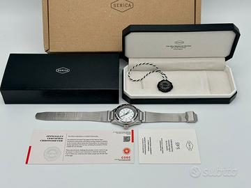 Vendo Serica 5303 Automatico, versione COSC, 39mm, Antimagnetico, colore bianco percellana con corona a ore 3, Ref: 5303-2 Orologio di difficile reperibilità, usato, perfettamente funzionante, segnalo per correttezza un piccolo segno sullo spigolo ansa delle ore 2 (visibile nella terza foto, riquadro basso a sinistra), non percepibile guardando l’orologio frontalmente, per il resto, in ottime condizioni. Acquistato a Marzo 2025 e in garanzia ufficiale fino a Marzo 2027. Fornisco lo screenshot della prova di acquisto presso il sito ufficiale mandatomi dal primo proprietario. Viene venduto completo di scatola, controscatola e documentazione. Prediligo l’acquisto con scambio a mano in zona Brescia con pagamento in contanti o piattaforme istantanee; In alternativa posso spedire (con varie scelte per i corrieri e tipologie di spedizione, da concordare) dopo avere ricevuto il pagamento con uno dei seguenti metodi: - Paypal (verso amici) - Bonifio bancario - Carta Poste - Tutto Subito (solo ed esclusivamente per valori inferiori a 400€ e con utenti che hanno almeno 20 Feedback positivi collegati al medesimo metodo di pagamento, non faccio deroghe di alcun tipo) SCAMBI/PERMUTE: - Solo ed esclusivamente scambio a mano zona Brescia. - Valuto solo orologi “attuali” e in perfette/ottime condizioni, quindi, NO VINTAGE o orologi con segni evidenti. Tudor Seiko Longines Oris Mido Tag Heuer Omega Tissot Squale Eberhard Vulcain Doxa Frederique Constant Citizen Echo Neutra Bell e Ross Baltic HTD Rado Yema Hamilton Maurice Lacroix Cartier Breitling. - Per non perdere tempo entrambi; Chiedo subito di descrivermi l’orologio, inviare qualche foto e soprattutto l’eventuale differenza a mio o vostro favore da valutare. CONDIZIONI DI VENDITA CHIARE E NON RIVEDIBILI, NON ACCETTO ALTRI METODI DI PAGAMENTO O SCAMBI OLTRE A QUELLI INDICATI. Vi invito a leggere i miei Feedback a dimostrazione della mia serietà. Mattia 3402580798