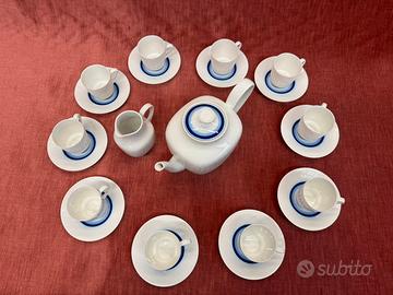 Servizio da caffè in porcellana della manifattura tedesca Lorenz Hutschenreuther da 10 (manca zuccheriera) caratterizzato dalla decorazione blu cobalto denominata "Echt Kobalt".