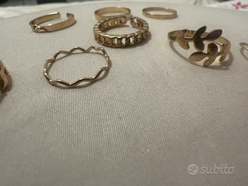 Bellissimo set di 10 anelli di color oro, raffinato ed elegante. Perfetti da indossare singolarmente o in combinazione. Sono regolabili e adatti a tutte le dita. - Design vari e particolari - Colore: oro