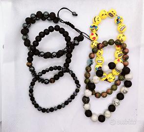 Pezzi Particolari: Bracciale con emoji gialle, Goldstone (pietra del sole) con chiusura magnetica.