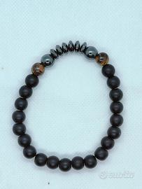 Stile Dark/Elegant: Onice matte con corona, Pietra Lavica ed Ematite regolabile.