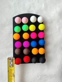 Blister con 12 paia di orecchini tondi di diversi colori. Misura in foto, nuovi mai indossati.
