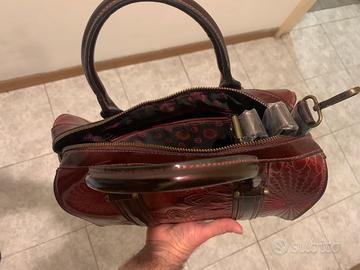 Vendo splendido borsa bauletto originali Desigual in condizioni eccellenti, perfette per ogni occasione: 1.) Bauletto Bordeaux: Elegante effetto vernice lucida con ricami mandala tono su tono. Struttura rigida, dotata di doppi manici e tracolla interna ancora imballata. Dettagli: originali e senza segni di usura. • Interni puliti con tasche portaoggetti. • Ideali come regalo o per rinnovo guardaroba. Ritiro: Solo consegna a mano a Milano (zona da concordare). Prezzo non trattabile (già scontato per vendita in coppia).