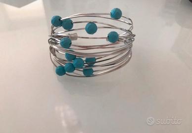 Bracciali marca LUIRO argento 925 con pietra dura turchese e pietra dura bianca , peso 32 gr ampiezza 6,5 cm modellabile al polso . Usato ma in ottime condizioni