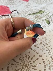 - Un bracciale è di colore blu con perline argentate e una centrale tempestata di strass. Chiusura a calamita