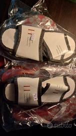 Set di 2 coppie di ciabattine infradito (uomo/donna) per spa/piscina, nuove in confezione sigillata. in omaggio 2 coppie di pantofole di cortesia nuove in confezione sigillata.
