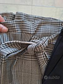 - Uno è a quadri nero e bianco, modello corto alla caviglia, gamba dritta e larga, marca Zara
