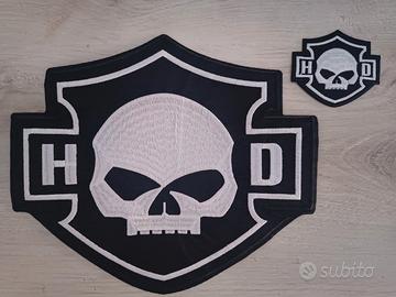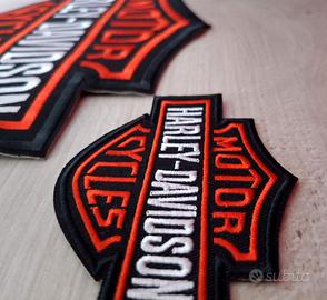 due toppe termoadesive Harley Davidson,cucite a mano, possono essere applicate con il ferro da stiro o cucite.