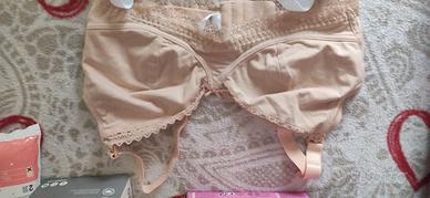 - Un reggiseno color beige con dettagli in pizzo.