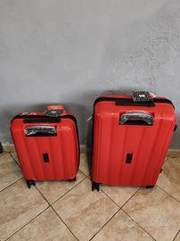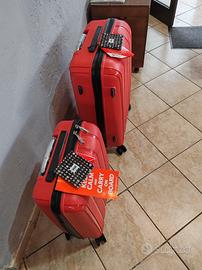 Vendo bellissimo set di 2 valigie trolley coordinate di colore rosso vivace. I trolley sono nuovi, mai usati e ancora con cartellino.
