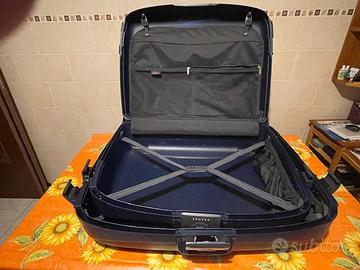 DUE VALIGIE/TROLLEY RIGIDE E IMPILABILI CON ROTELLE, MANIGLIE, CHIUSURA A COMBINAZIONE, COLORE BLU,MOLTO CAPIENTI E ROBUSTE